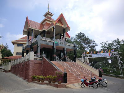 Cada cop la carretera es va fent més estreta i la pujada mes pronunciada i passem de utilitzar la 4a marxa de la moto a tindre que pujar amb segona en alguns trams. En poca estona ens estem endinsant dins la vegetació de la muntanya, perdent-nos cada cop més però seguint i confiant en els cartells que indiquen la direcció del anomenat temple, fins que fem la primera parada en un temple que hi ha de passada on tothom para per descansar i depas fan una ullada al lloc.
